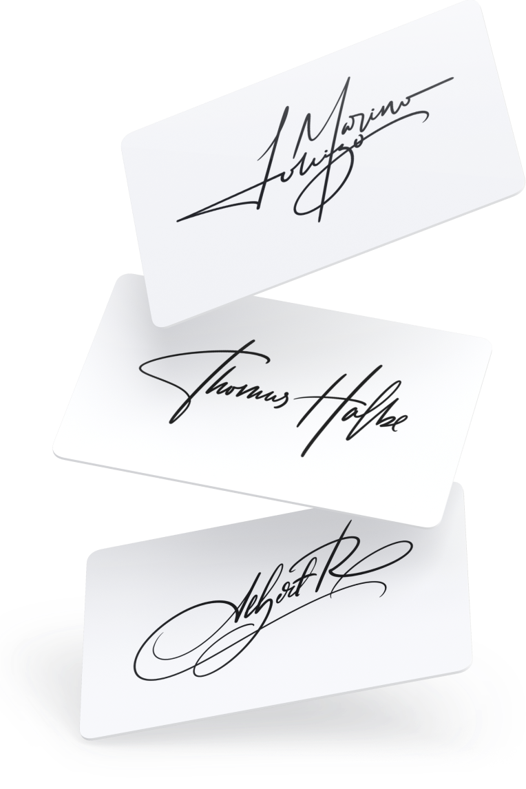 Unlike our full-size signature, which you can use for signing important documents, contracts or as a part of your brand, our initials will help you to sign with the same elegance and confidence in everyday cases much quicker