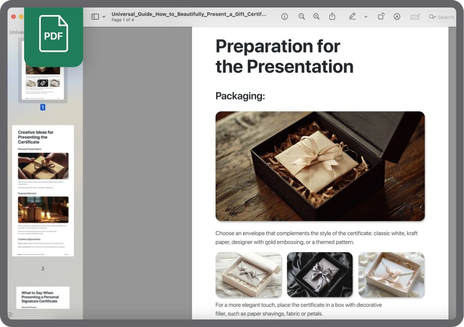 Vous pouvez envoyer un certificat électronique au bénéficiaire du cadeau ou l’imprimer et le remettre en personne. (Nous vous enverrons des instructions pour l’imprimer de manière soignée.)