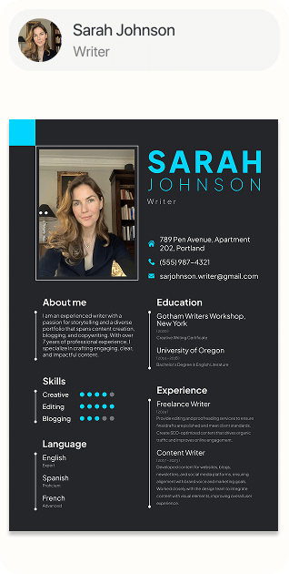 Our expert crafts powerful resumes that grab attention instantly. We combine compelling copy with sleek, modern design to showcase your strengths, making recruiters stop and take notice. Don’t let your dream job slip away — get a professionally written and designed resume that sets you apart!