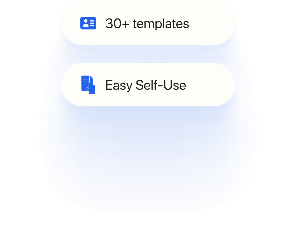 Our team of professional HR experts in collaboration with our designers has created more than 30+ original templates that will suit any level of expertise and any kind of occupation. We made it simple. All of them are exclusive and adapted for self-use. After studying the guide that we have attached, you will need a little time to fill out your digital Resume with the necessary information and be ready to get your dream job.